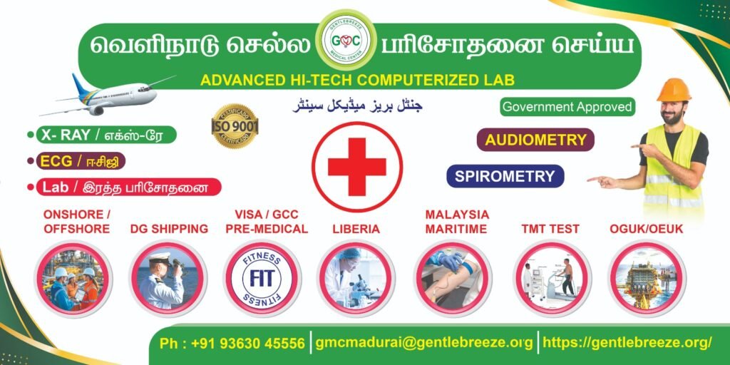 If you are applying for jobs in UAE, Saudi Arabia, Qatar, Kuwait, Oman, or Bahrain, you will need a GCC medical certificate. Gentle Breeze Madurai is a recognized centre for GCC pre-medicals, offering blood tests, X-rays, physical exams, and other mandatory investigations. We provide fast and embassy-approved GCC medicals in Madurai, ensuring smooth visa processing for your Gulf employment.